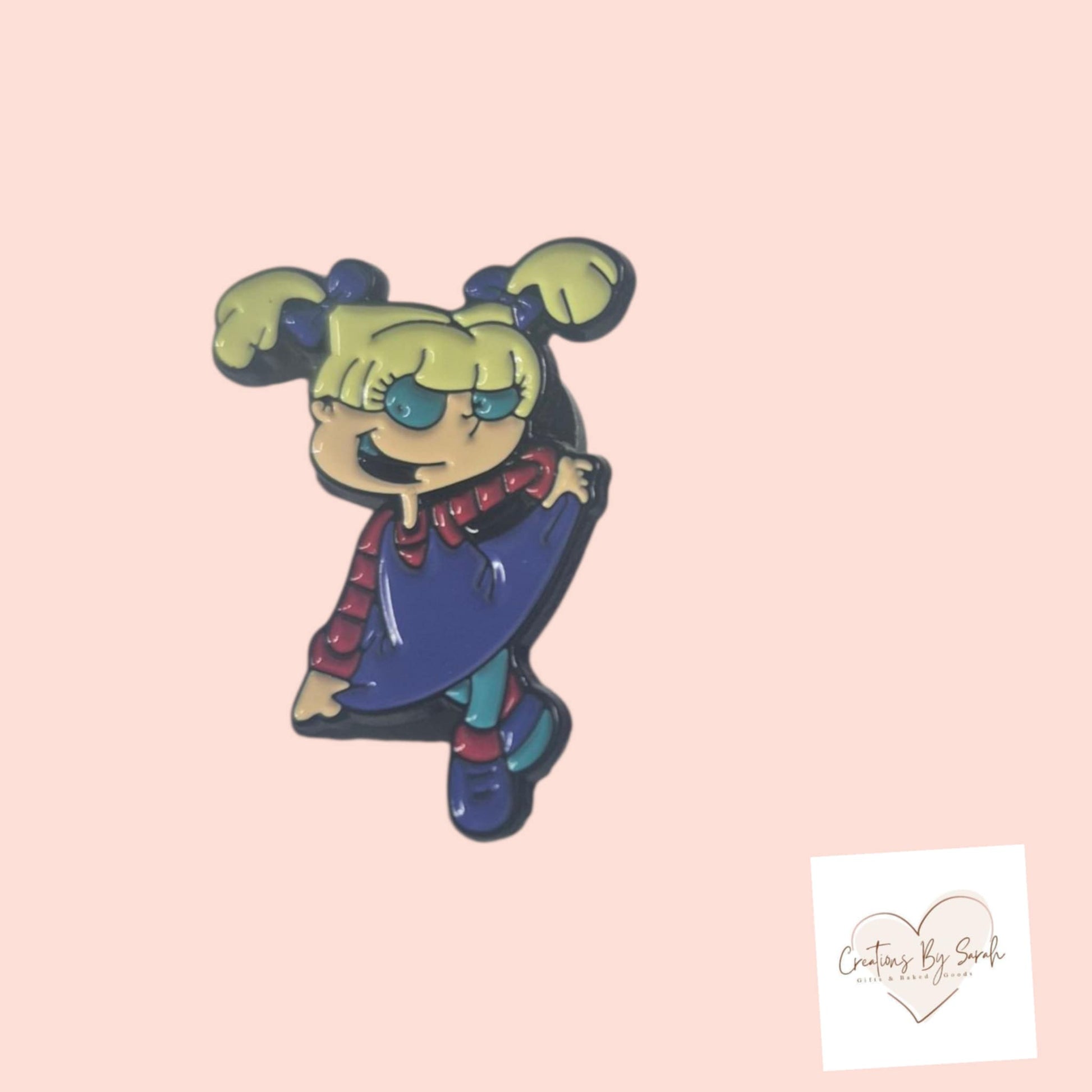 Celebrate your love for the classic animated series with this expertly crafted Angelica Rug Rats pin badge. Featuring a detailed and charming depiction of Angelica, this accessory adds a nostalgic touch to any outfit or collection. Its sturdy construction ensures durability while keeping Angelica's playful spirit vibrant. Perfect for fans or collectors eager to showcase a piece of Rug Rats nostalgia with subtle sophistication.