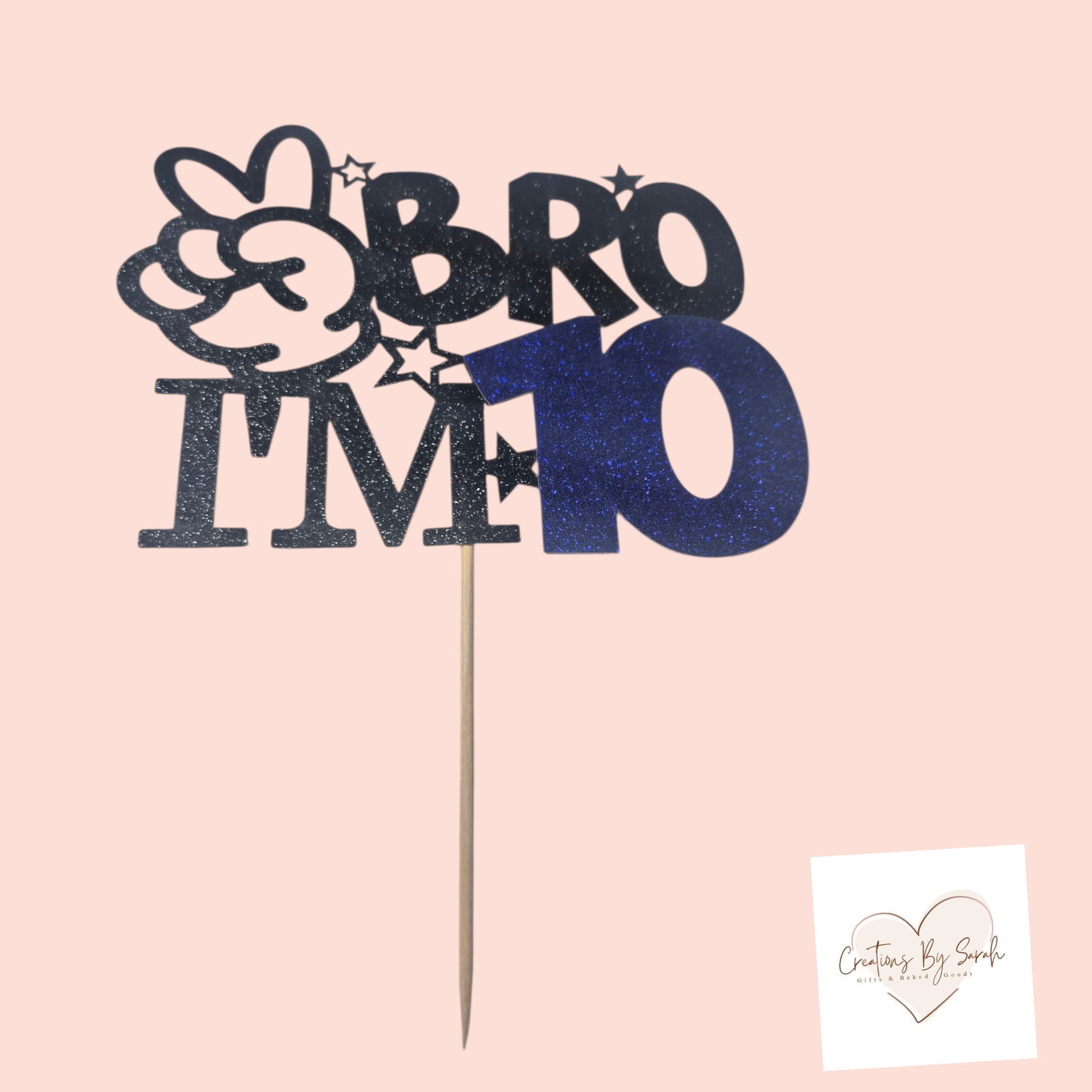 Celebrate an 8th birthday with this custom-made "Bro I'm 8" cake topper featuring a trendy peace sign. Crafted to order, it adds a personal and stylish touch to birthday cakes, making the occasion extra memorable for the young celebrant. Designed with care, this topper combines fun and flair, perfect for highlighting a special milestone.