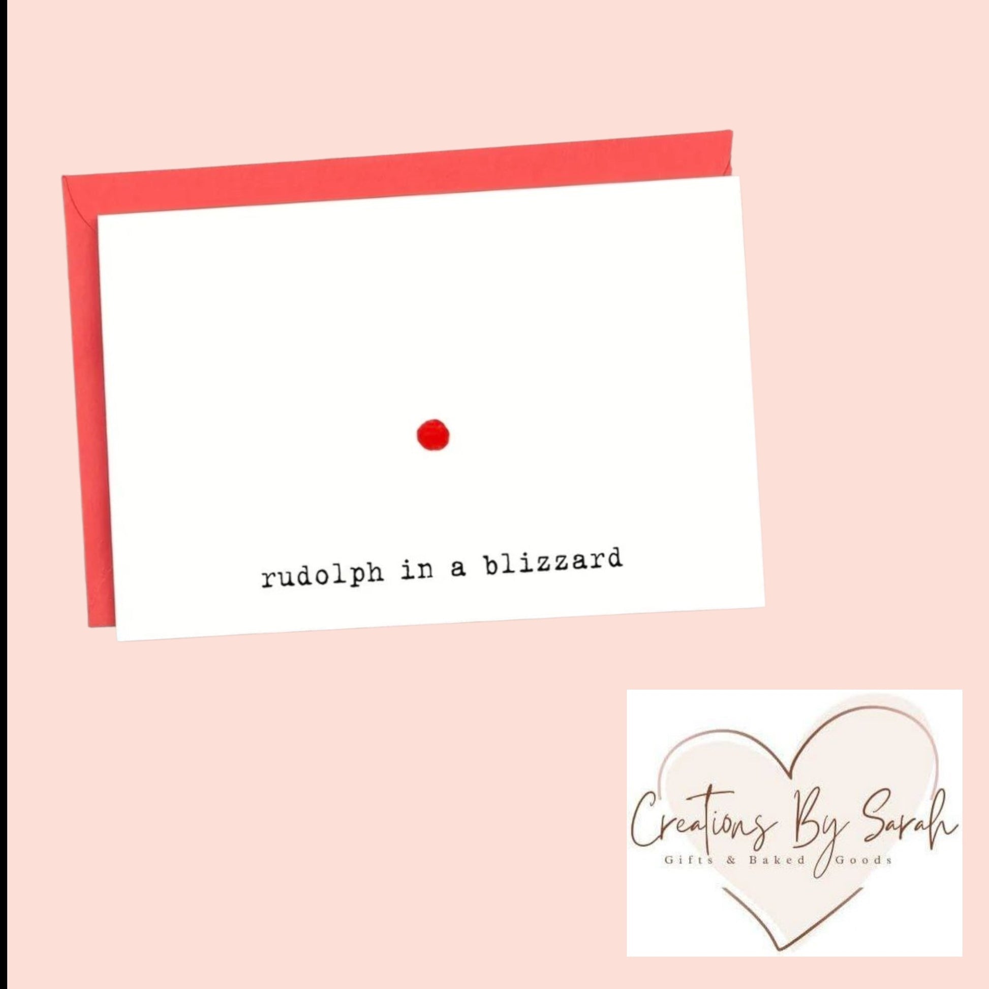 Rudolph In A Blizzard is a humorous Christmas card that brings festive cheer with a comedic twist. Perfect for those who appreciate witty holiday humour, this card features a playful take on the beloved reindeer caught in winter weather. Ideal for sending to friends and family who enjoy a good laugh during the festive season, it's a memorable way to spread Christmas joy with personality and charm.