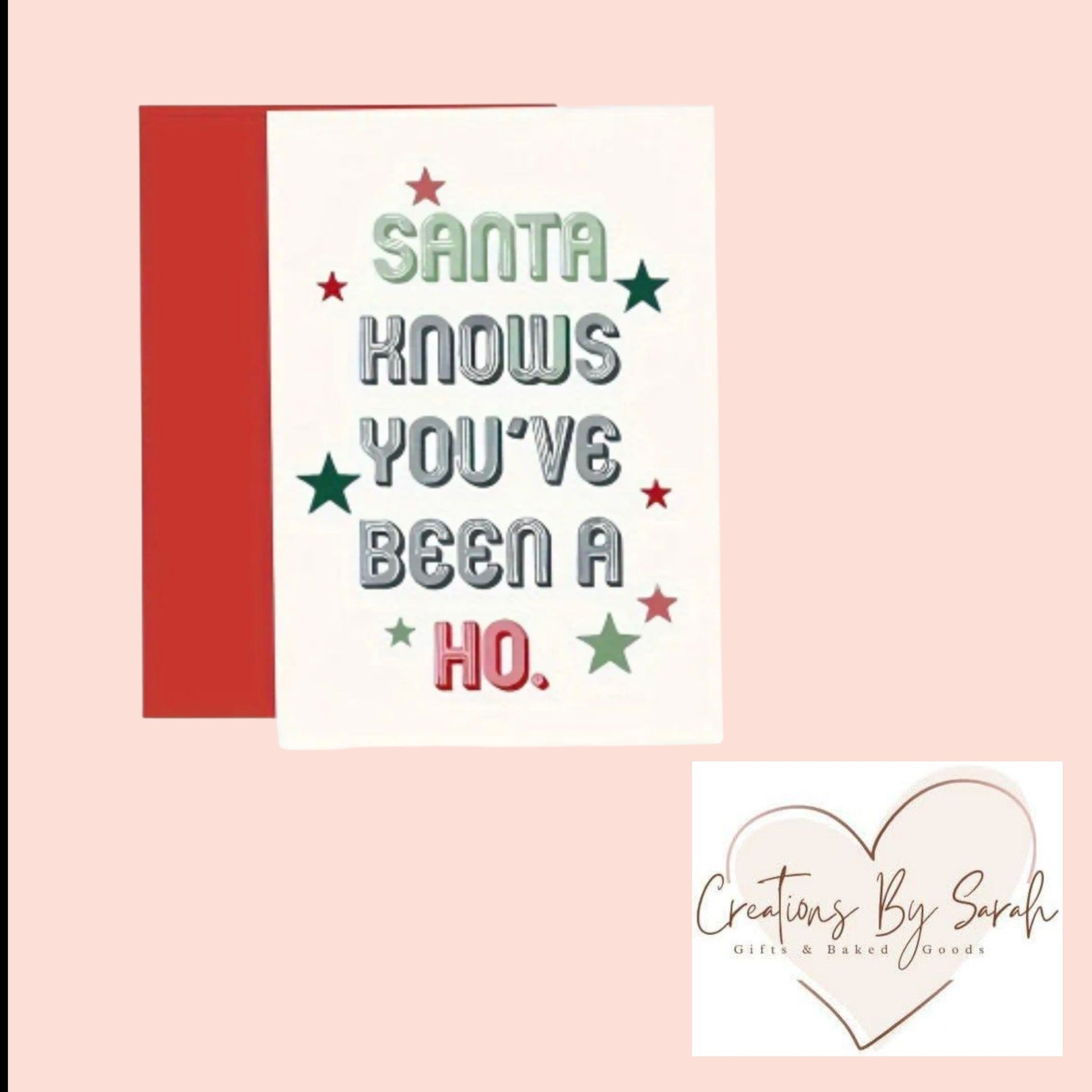Santa Knows You've Been A Ho – the cheeky Christmas card that brings a laugh to the festive season. Perfect for friends with a sense of humour, this playful greeting card delivers a witty twist on holiday greetings. Whether you're sending it to a gardening enthusiast or simply someone who appreciates a good pun, this card guarantees smiles on Christmas morning. Blank inside for your personal message.